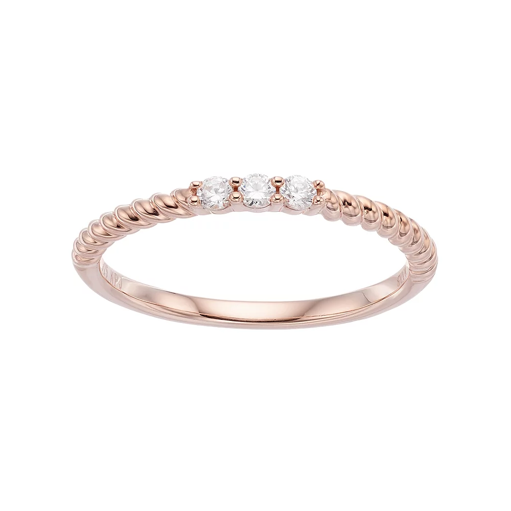 Featuring a trio of round-cut diamonds and a twisted band, this Simply Vera Vera Wang anniversary ring is a timeless token of your unconditional love.