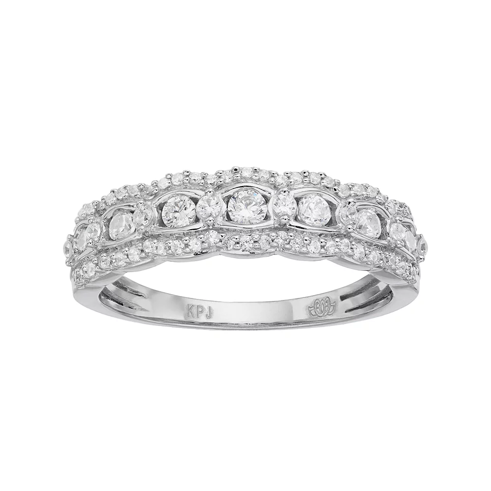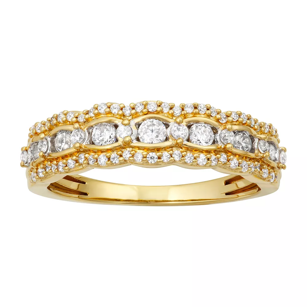 Featuring a scalloped band decorated with round-cut diamonds, this Simply Vera Vera Wang wedding ring is sure to be cherished for a lifetime.
