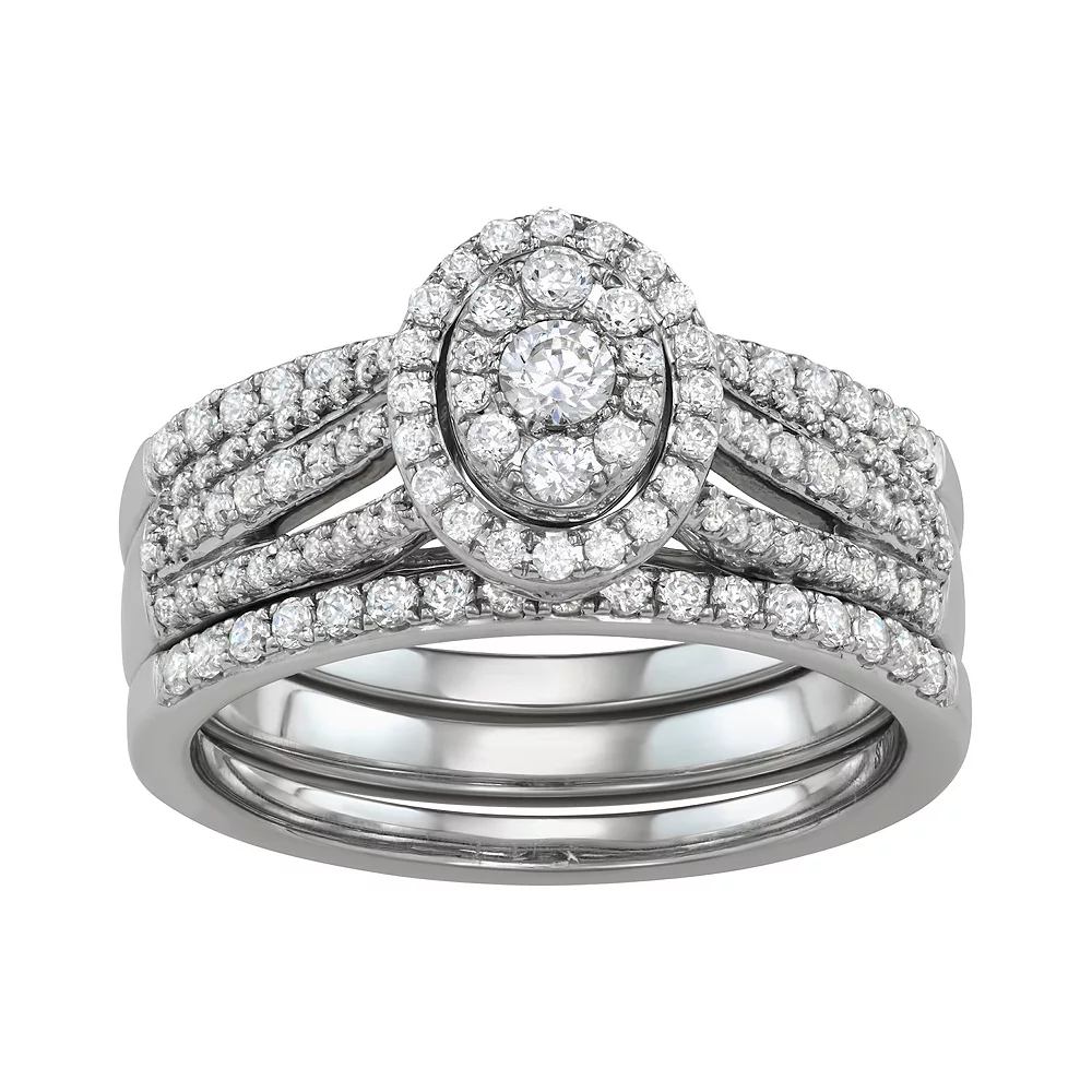Beautifully decorated with dazzling round-cut diamonds, this 14k white gold teardrop engagement ring set is a breathtaking symbol of your commitment.