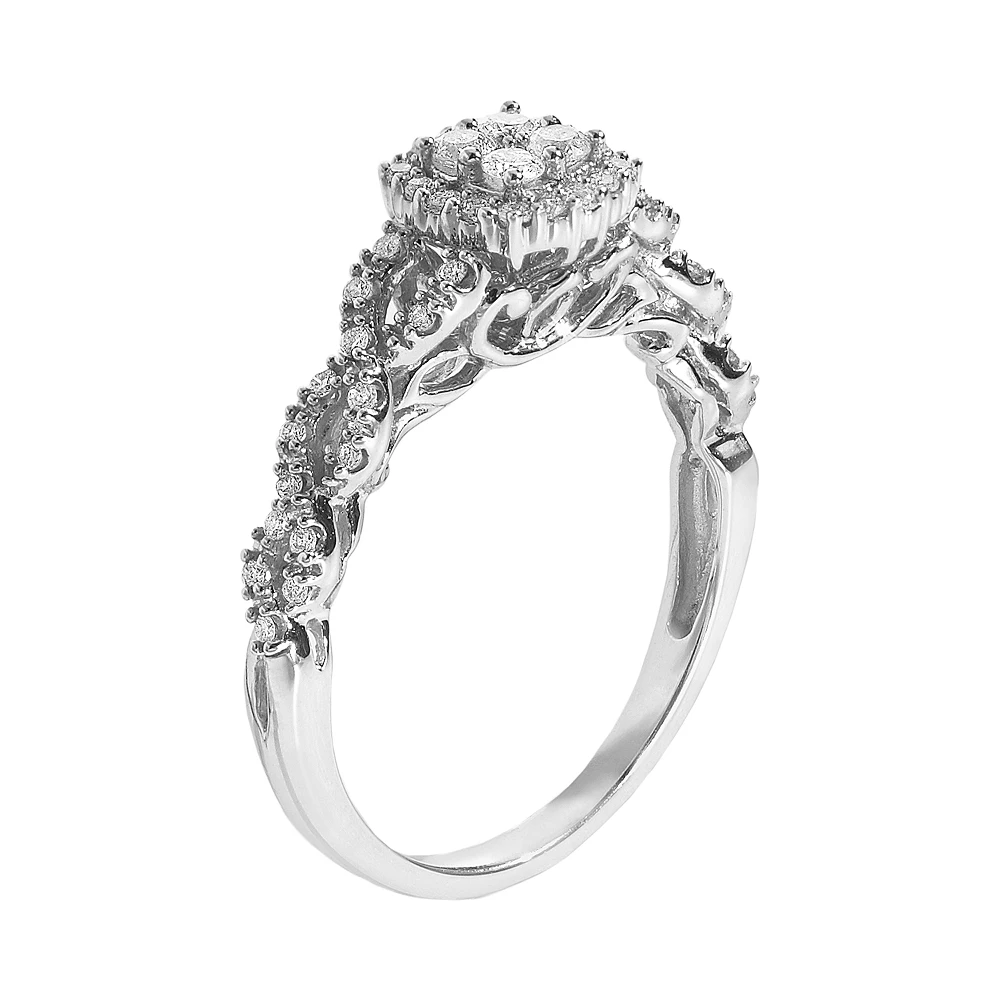 Round-cut diamonds illuminate the square frame design and twisted details, making this ring one she’ll undoubtedly adore. Packaging: signature packaging includes a wooden ring box, satiny pouch, gift box with ribbon and gift bag.