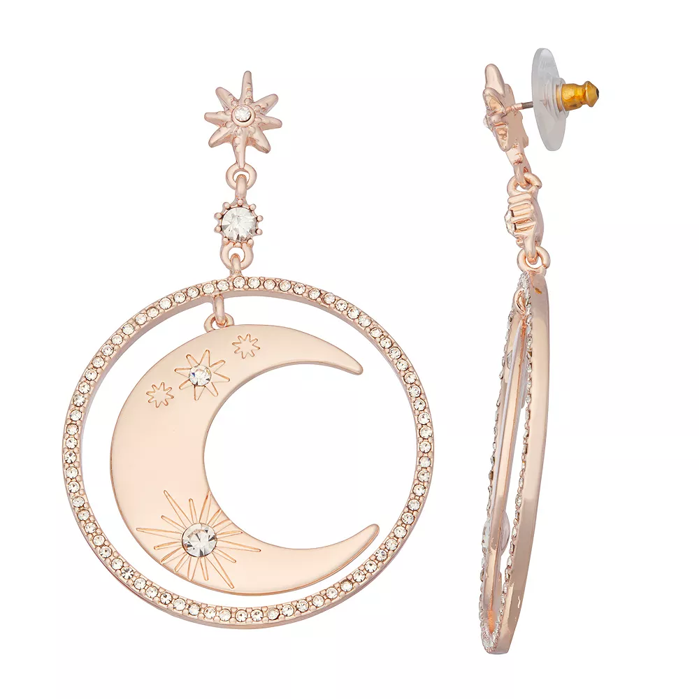 Add beautiful style to any look with these Simply Vera Vera Wang moon and star orbital drop earrings.