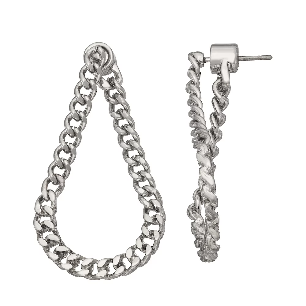Finish off your ensemble with a touch of edge in these silver tone curb chain loop front-to-back drop earrings from Simply Vera Vera Wang.