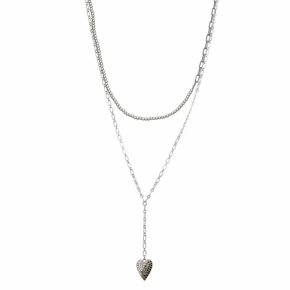This two-toned Simply Vera Vera Wang Silver Tone Heart Y Necklace is perfect for daily wear.