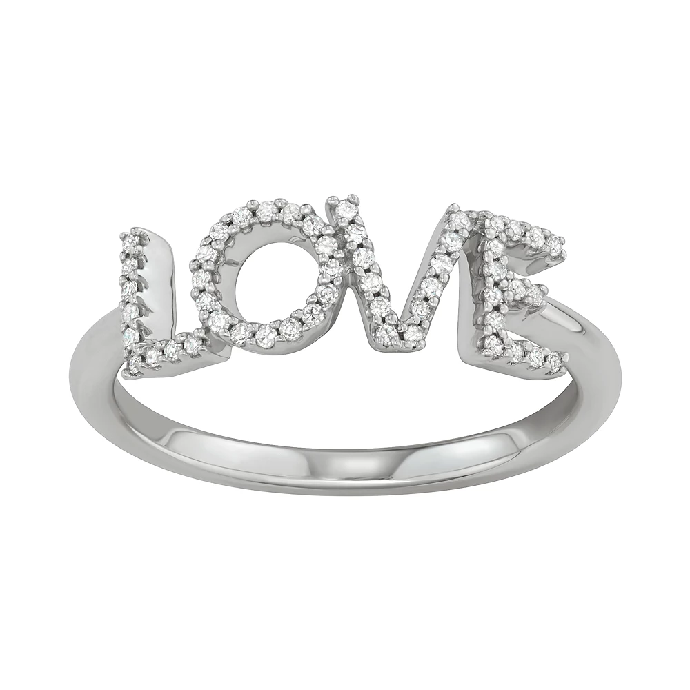 You’re sure to cherish this eye-catching diamond “Love” ring.
