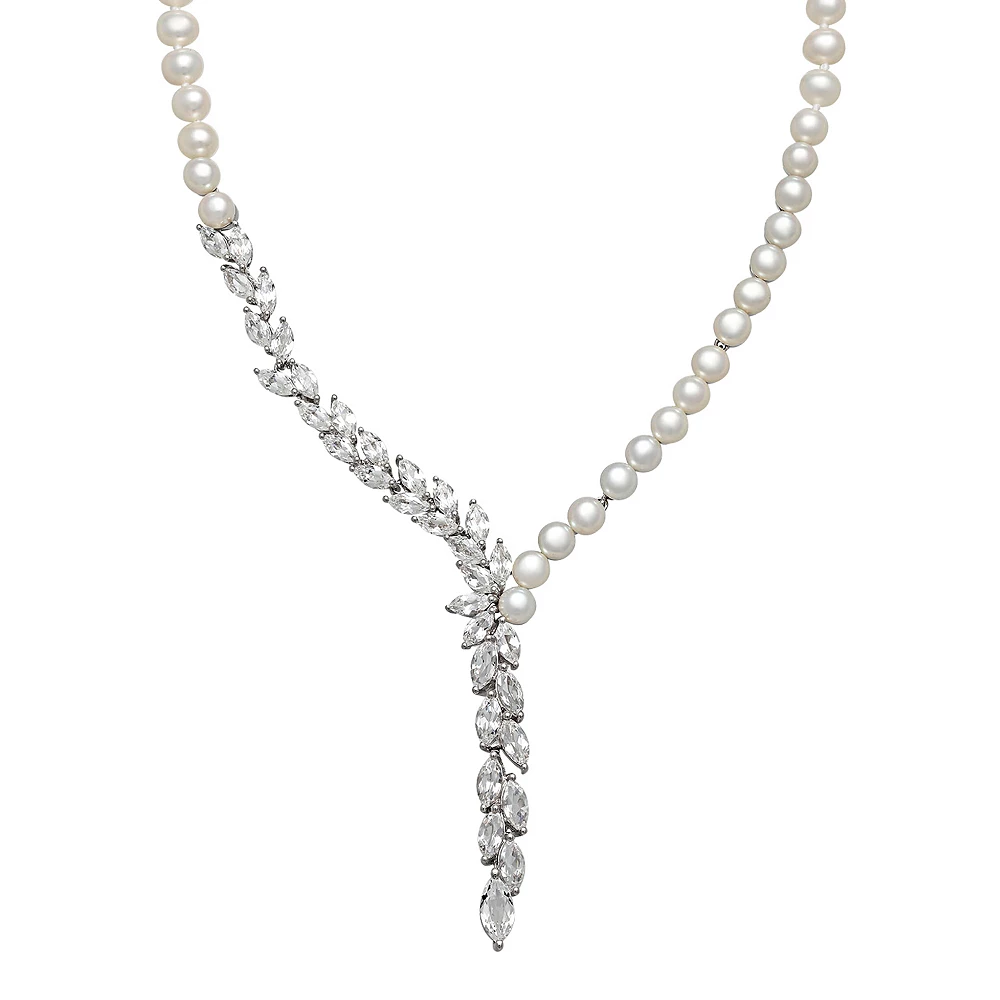 Simply Vera Vera Wang Sterling Silver Dyed Freshwater Cultured Pearl & Lab-Created White Sapphire Y Necklace