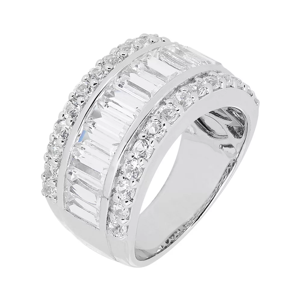 Rows of round- and baguette-cut, lab-created white sapphire stones give this Simply Vera Vera Wang ring elegant beauty.