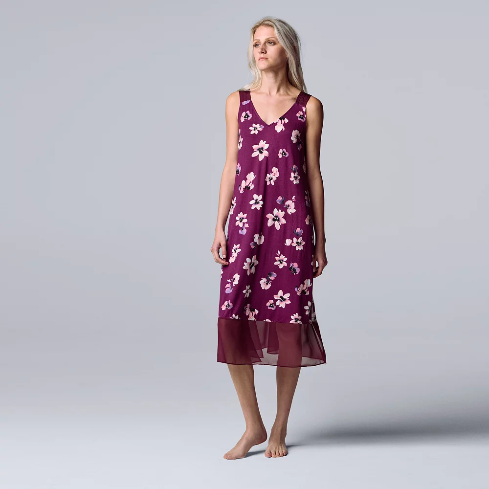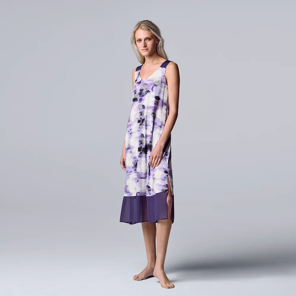 Women’s Simply Vera Vera Wang Long Chemise with Chiffon and Satin Trim
