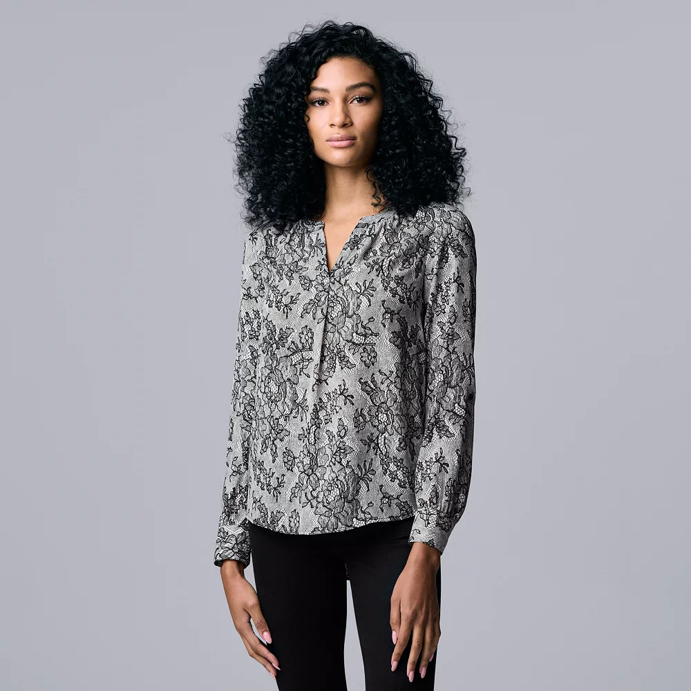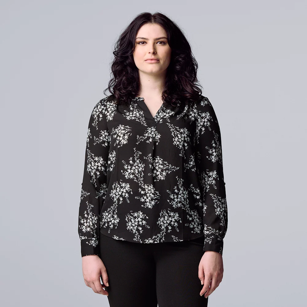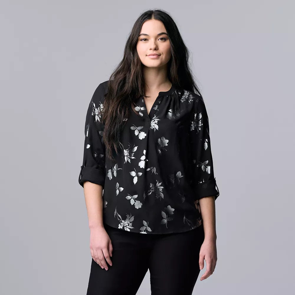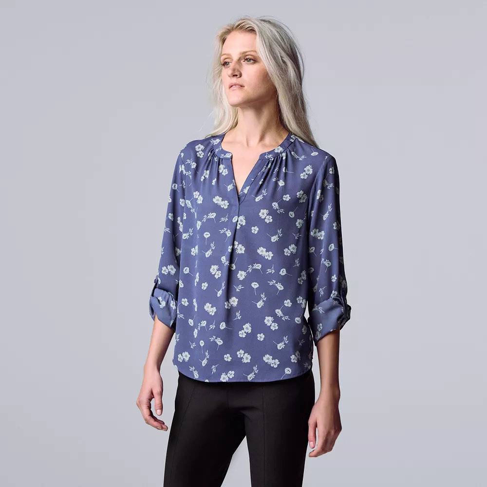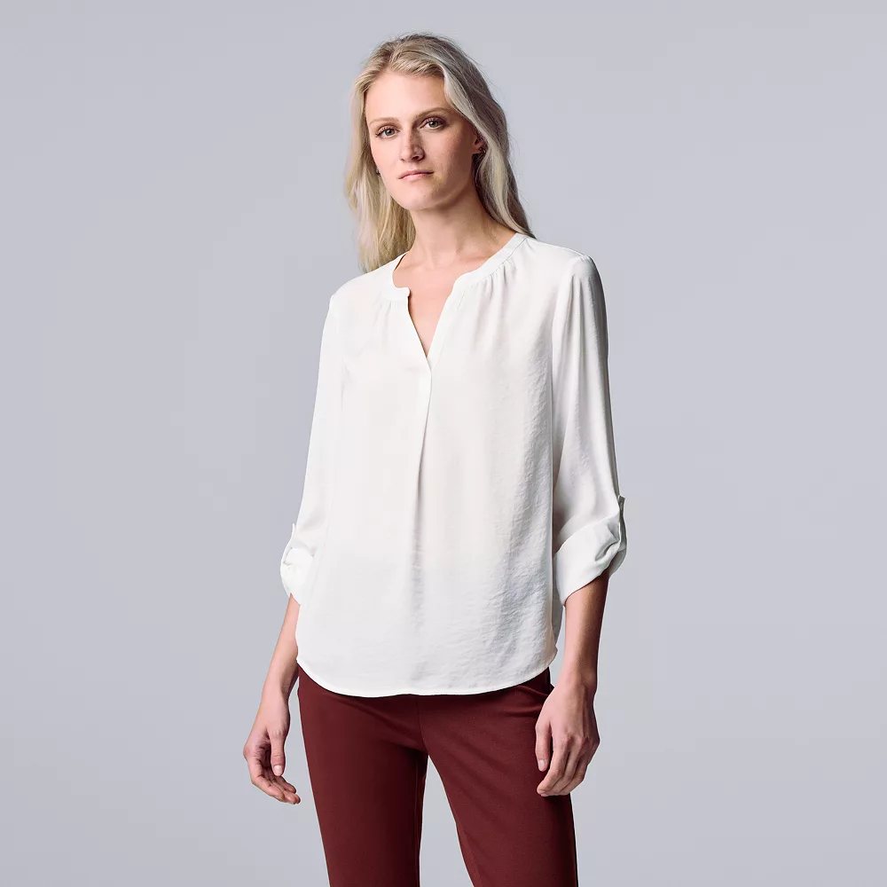 Women’s Simply Vera Vera Wang Roll-Tab Sleeve Popover Blouse