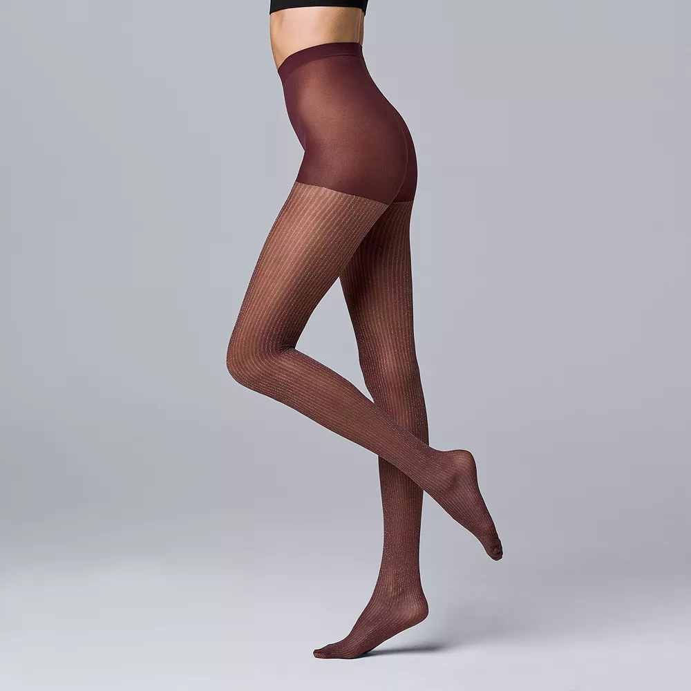 Elevate your style with these metallic pinstripe tights from Simply Vera Vera Wang, featuring a tummy control waistband for a flattering fit.