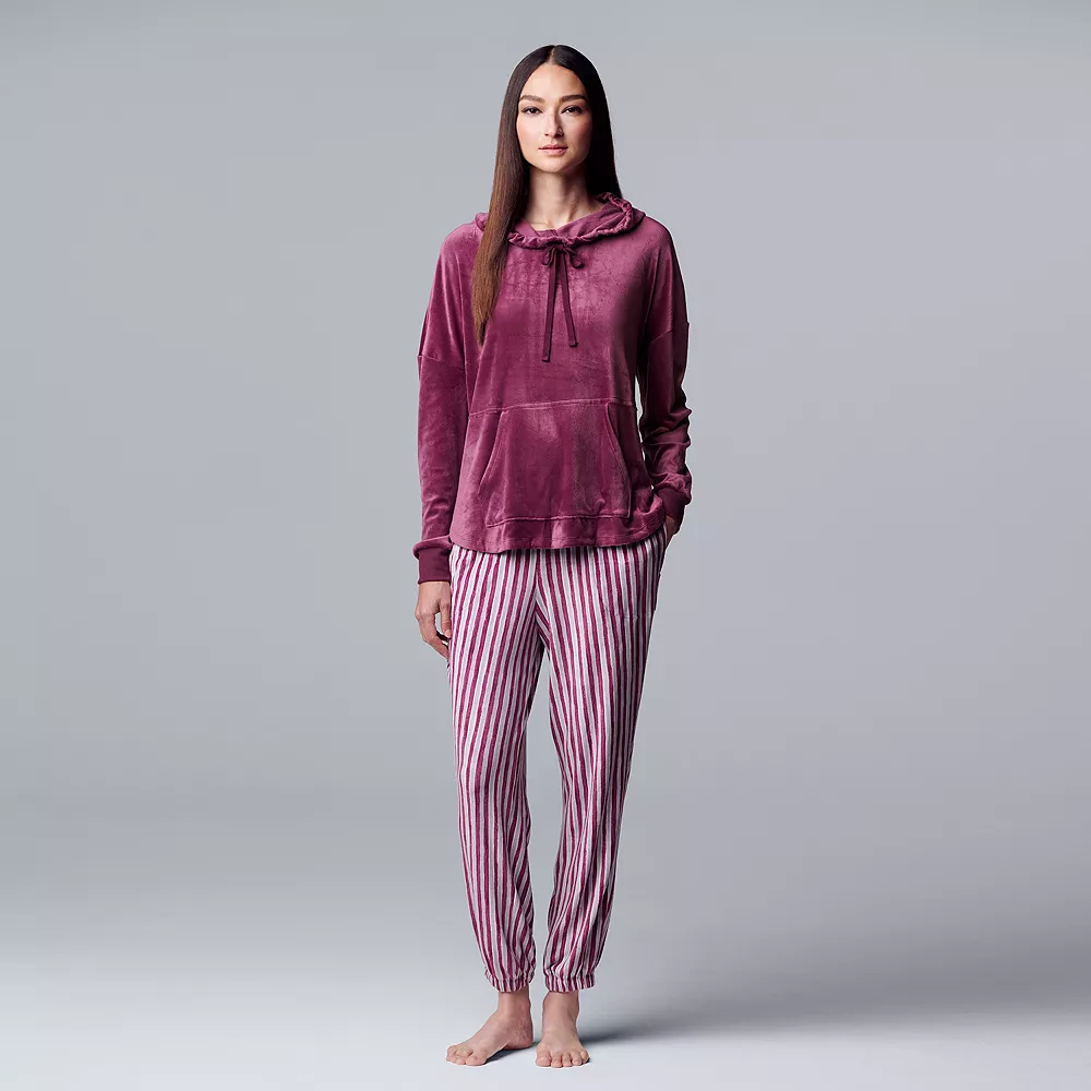 Women’s Simply Vera Vera Wang Velour Hooded Pajama Top and Banded Bottom Pajama Pants Sleep Set